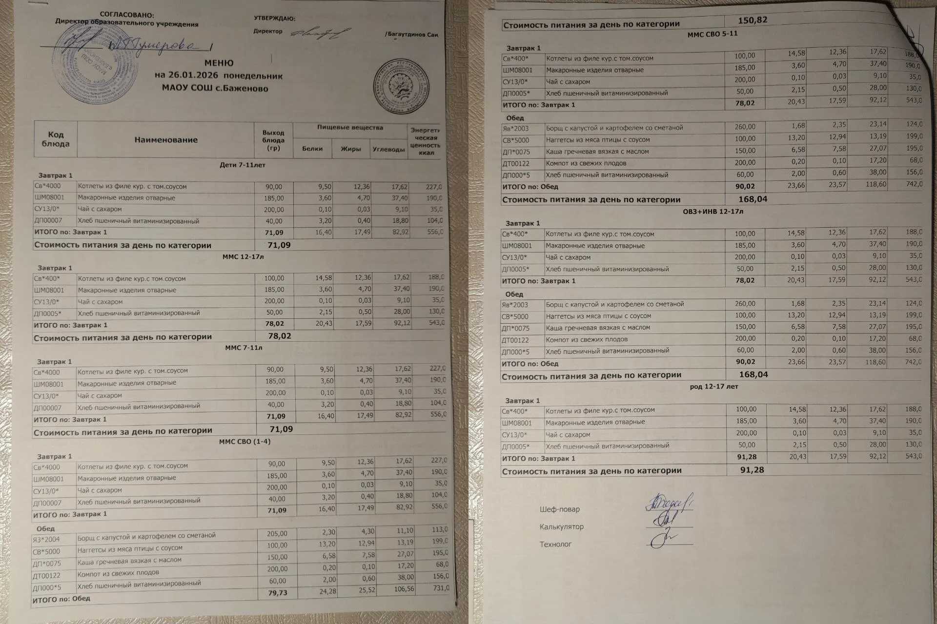 Организация питания в образовательной организации